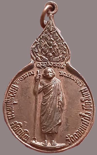 เหรียญยืนถือไม้เท้า หลัง มวก. หลวงปู