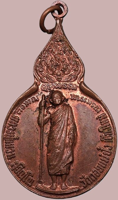 เหรียญยืนถือไม้เท้า หลัง มวก. หลวงปู